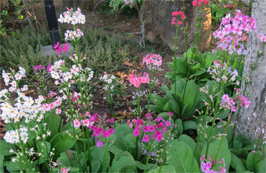 ![]() 木の下の涼しそうな場所で咲く様々な色のクリンソウ ![]() ペンステモン ![]() 庭主さんとの談笑に過ごすうち、夕日が優しく差し込んで来ました |