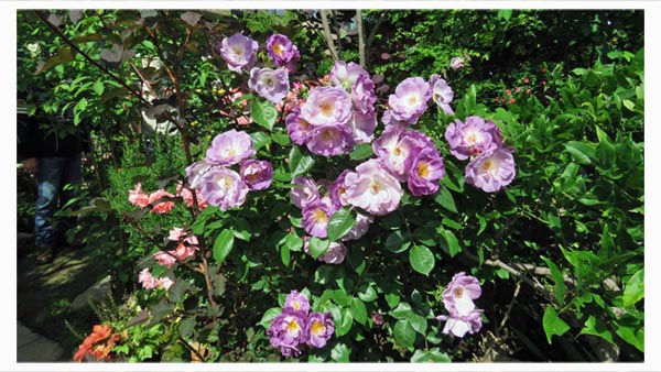 緑の中で、控え目に存在を主張するバラたち![]() 赤や白、ピンクのバラが多い中、紫のバラが珍しく、カメラを向けました ![]() 和紙に絵具を染み込ませたような透明感あるバラ。 同じ枝から異なる色の花が咲いています。 ![]() 白い円卓に置かれたレモンイエローのバラと葉っぱが優しい ![]() 門の前を飾る色取り取りの花たちが来園者を迎えます |