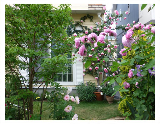 ![]() (13)洋風建物に良く似合うローズガーデン ![]() (15)窓の外を飾るハーブ(ルー)やアイリス、ペチュニアなど |