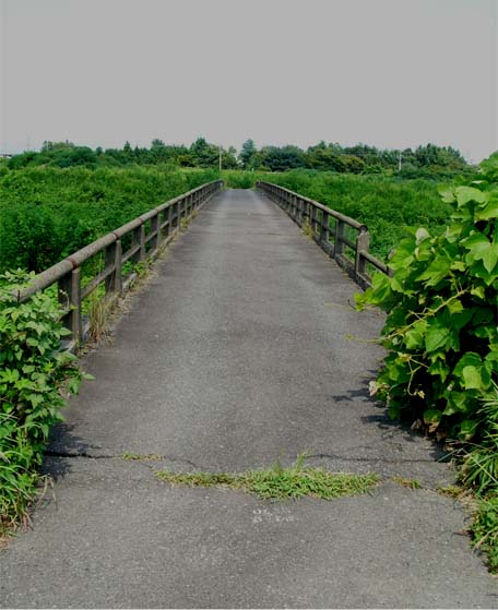 以前(2008/8/16)、このページで「となりのトトロが出て来そうな風景」として紹介した荒砥川の小さな橋・「下東橋」、車が通るにはちょっと恐そうだったこの橋が、先日久し振りに訪れてみると、 「あれ?半分ない?!え〜!」 「・・・・・・」 「でも、・・・・どうして半分だけ?」 特に工事車両や建設機械も見当たらず、半分だけ残っていたこの橋。 あなたにはこの謎が解けますか? オブジェとして残すなら大胆でユニークな計らい・・・(2010/6/13 記) |
