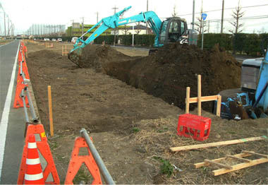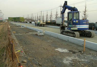 ![]() 「境木島」交差点の東側で路盤工が進行中 2013/12/13 ![]() 「境ふれあい」パークの南では路盤を深く掘削 2013/11/17 |