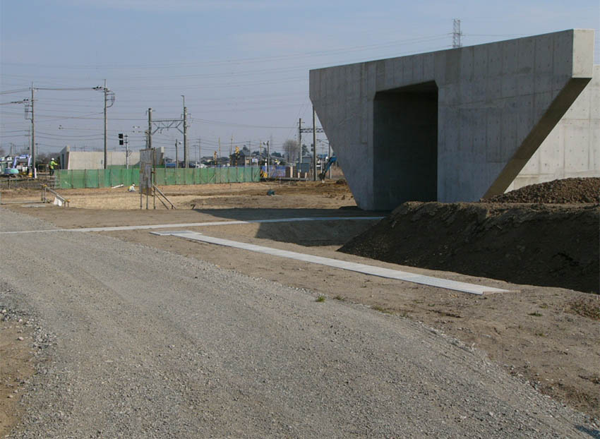![]() ちょうど東武伊勢崎線が通過(西側から) 2012/3/11 ![]() 跨線橋西側のボックスカルバートとその西側の盛土区間(西側から) 2012/3/11 |