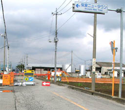 ![]() 西側の道路センターに立ち東方を見る 手前の道路は迂回路 2012/7/8 |