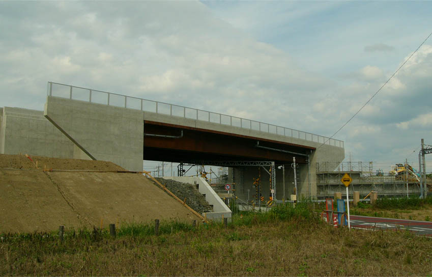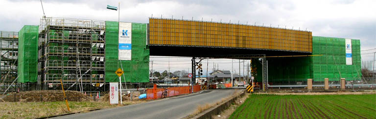 【跨線橋部】 工期:2010/9/29〜2011/3/15 【A1橋台】、境木島側(東武伊勢崎線の東側):トーモー(株) 【A2橋台】、境上武士側(東武伊勢崎線の西側):上柿建設(株) |
