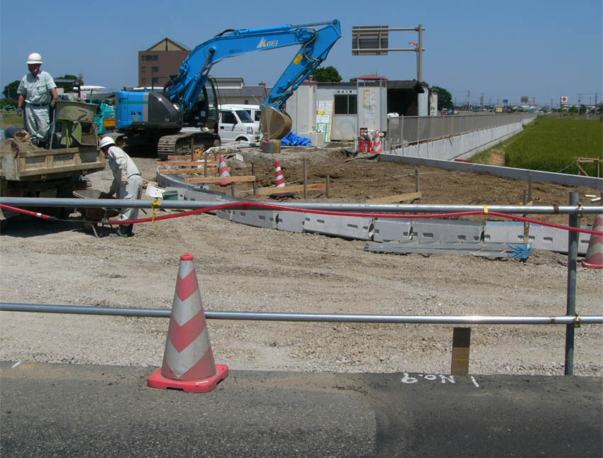 ![]() 交差点南東側。L型擁壁布設中。(南端部から北方) 2012/3/20 |