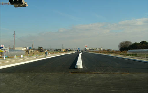 ![]() 路盤工完了。 既存道路側は舗装完了。 (東方を見る) 2012/11/25 |