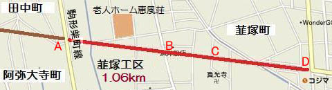 2012/11/10と2012/11/25日の駒形柴町線交差点〜コジマ電機区間(下図A〜D間)の道路工事状況![]() |