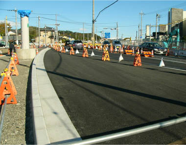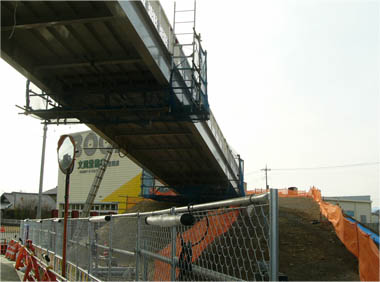 ![]() 拡幅部の西側端部付近。後方に完成間近の歩道橋 2013/2/17 |