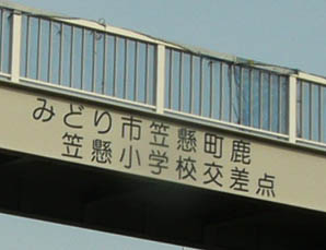 ![]() 「鹿交差点」歩道橋橋銘板・「花咲架け橋(かさかけはし)」 2013/4/11 ![]() 「鹿交差点」歩道橋から見る東方(桐生方面) 2013/4/11 |