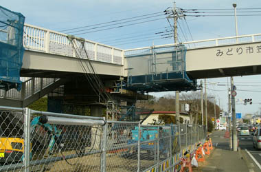 ![]() 完成間近の 「笠懸小学校交差点」歩道橋(西側から東方) 2013/2/17 |