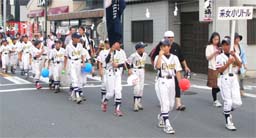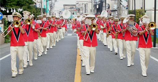 | 夕暮れまでのひと時、国道354号ではパレードが行われました。 伊勢崎市の消防音楽隊の吹奏楽のマーチを先頭に、市内の様々な団体、グループがパレードを行いました。 |