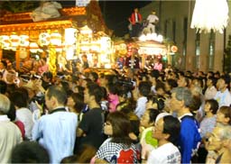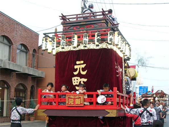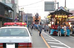 ![]() 駅前通りを巡行する仲街の山車 ![]() 東街 ![]() 上街 |