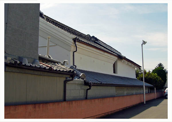 ![]() 敷地西側に建つ土蔵。大正4年建築。 2014/8/9 ![]() 東隣り(画像左)の斎藤本家は、壁の額縁や鬼瓦等が 一回り大きい。右が当家。 2014/8/9 |