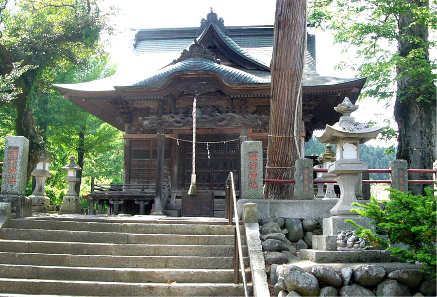 ![]() 四面を立派な彫刻で埋められた諏訪神社拝殿 2011/5/14 |