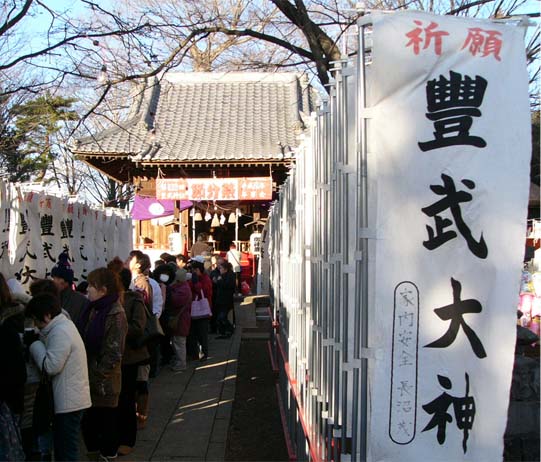 | 2009年2月1日(日)、伊勢崎市大正寺町の 今年で98回目となるこの節分祭、地域に住む本厄の男達(数え42歳)が「年男会」を結成し、計画から資金調達、実施までを全て自分達の手で行う行事とのことです。98回と言えばほぼ一世紀。そのような伝統ある行事が伊勢崎の地で継承されていたこと、恥ずかしながら今まで知りませんでした。 ![]() この日、前日からの上州名物空っ風が吹き止まず、肌寒いばかりの日で、客足は少ないだろうと予想して駆けつけると、あにはからんや境内は人、人、人で埋め尽くされ、熱気で溢れていました。 |