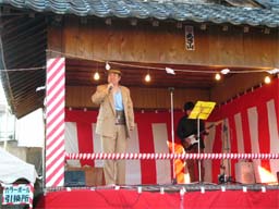 3回の豆まきの合間には様々なアトラクションが行われました。 神楽殿ではフーテンの寅のそっくりさんショー。 |