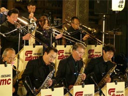 | 10月も中旬を過ぎると夜は結構冷え込みますが、この日は例年より暖かかったせいか、持参した上着を着る必要がありませんでした。神社の境内から広瀬川脇の伊勢崎図書館の駐車場まで早歩きで戻った時には、夏のようにかいた汗でビッショリでした。 街を照らす燈籠の灯りにホッとし、神社の境内に響き渡るSMCのジャズサウンドに心地良くなり、体内に溜まっていた不純物が一掃されたような秋の宵でした。さぁ、今週もまた頑張るぞ〜! SMCの皆さん、今年もまた楽しい音楽をありがとうございました。(2009/10/23 記) |