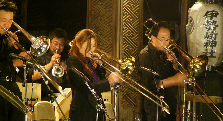 ![]() (21)Trumpet、Trombone、Saxの音が境内に一斉にダイナミックに響き渡ります |