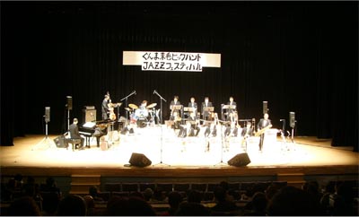 | ■ぐんま東毛ビッグバンド JAZZフェスティバル■ ■日時 : 2008/2/2(土) 15:35〜19:10 ■場所 : 太田市薮塚本町文化ホール カルトピア ■出演バンド(下記6バンド:出演順) ・群馬大学GKオールスターズ ・新田ニューフィールド・ユニオン ・ミツバ・ミュージック・レンジャー ・BIGBAND MANEKINEKO ・大木哲とスウィンギン・ジョントベンチャーズ・オーケストラ ・ISESAKI SMC BIG BAND |
