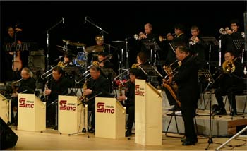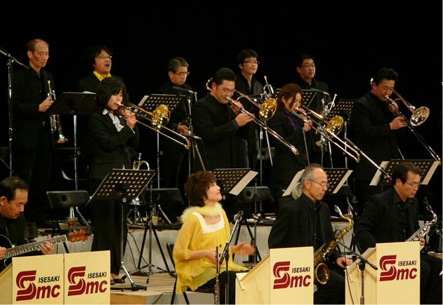 | 2009/2/7(土)、太田市薮塚本町の文化ホールカルトピアでぐんま東毛ビッグバンドJAZZフェスティバルが開催されました。出演バンドは昨年の第1回目のフェスティバルと同じく桐生市、太田市、みどり市、伊勢崎市の6つのビッグバンド。伊勢崎市からは我らがSMC(ISESAKI SMC BIG BAND)が出演し、今年も大トリを務めました。 1年振りに再会した各ビッグバンド、皆さん変わりなく元気に集まり、4時間に渡った冬の夜のロングコンサートは大いに盛り上がりました。100年に一度と言われる大不況もこれで吹っ飛ぶこと間違いナシ!・・・とは言い過ぎですが、楽しい音楽にはどんな時にも気持ちを明るくさせてくれる特効薬がたくさん含まれています。 |