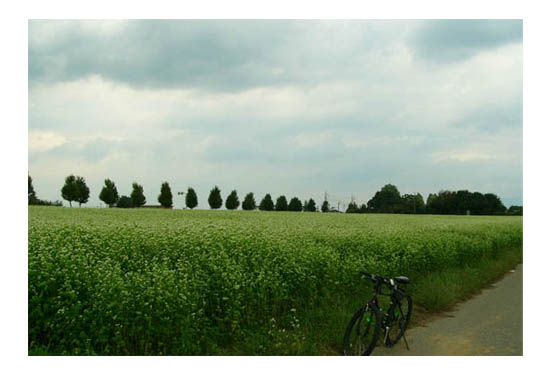 ![]() 道路の街路樹との構成が面白く 2007/10/6 ![]() お椀のような林と蕎麦畑 2007/10/6 ![]() 近くで見る蕎麦の花 2007/10/6 |