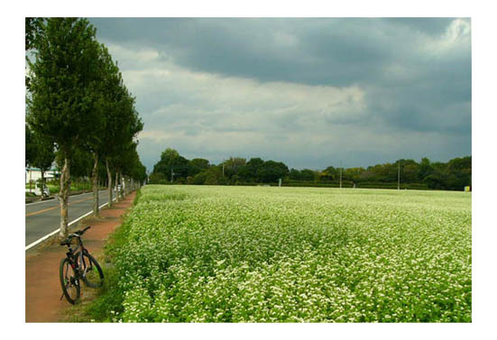 Soba"."Soba village Festival" Event is held every year. I also love buckwheat, I make the New Year's Eve soba at a friend's house in the neighborhood. Its taste is delicious enough to indescribable (self-praise ). Although it is the annual event which already continues for many years, it will not succeed, without the advice of a teacher. Although a photograph was taken when cycling this year(2006), the field surface was filled with the white flower as well as last year. Area under cultivation seems to have spread further than last year. |