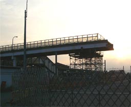 ![]() ホームを西側へ延長。工事中はホームを一旦西側に移動するようです。 2007/7/7 ホーム間を繋ぐ立体化工事中の仮設跨線橋が完成して暫く経ちますが、まだ使用開始にはなっていないようです。 (2007/7/4) ![]() 仮設跨線橋 2007/6/30 ![]() 仮設跨線橋の西側のホームにも屋根が付きました 2007/6/30 ![]() ホーム西端に作られた仮跨線橋まで屋根ができるようです。 2007/6/10 |