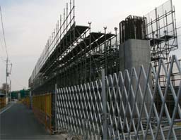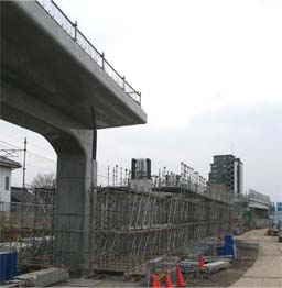 三ツ家橋通りの踏切から西の 高架橋工事 |