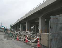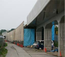 ![]() 盛土区間と高架区間の境界付近 2009/6/5 ![]() 西端部。手前の道路は工事用道路 2009/5/23 |