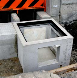 ![]() 粕川左岸堤防脇に造られた 人道ボックス 2009/9/19 ![]() 人道ボックス前の雨水桝 2009/9/19 ![]() 地上にすり付くスロープ部北側の 市道では道路改良工事中 2009/9/19 |