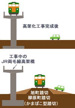 ![]() ━:JR両毛線の高架橋区間 [ 拡大 ] |