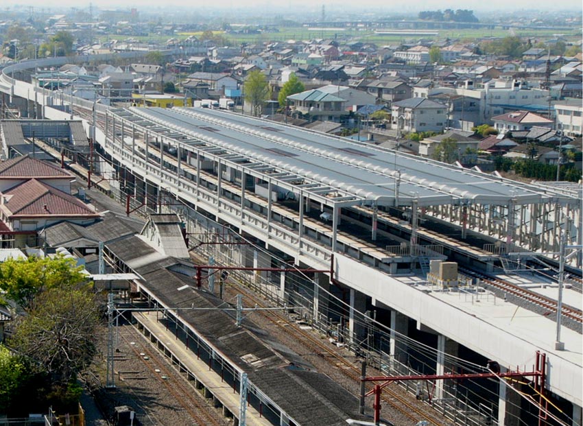 ![]() 南口の東武伊勢崎線ホーム側から 後方に建設中の伊勢崎駅駅舎 |