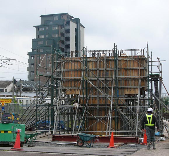 ![]() 準備を終えて 夜の架設を待つばかりの現地。 作業員の人達は 夜に向けて一旦引き上げたとのこと。 左のクレーンは550ton。 黒い物体はカウンターウェイト。 2008/5/20 ![]() 型枠撤去中 2008/5/17 5/11〜5/17の間に コンクリート打設が行われましたが、 残念ながら撮影できませんでした。 ![]() 型枠の組み立てを終了した橋脚 2008/5/11 |