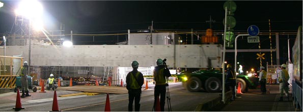 クレーン一括吊り架設 2008/5/20 午後9:00〜5/21 未明 |