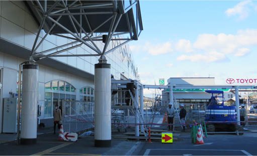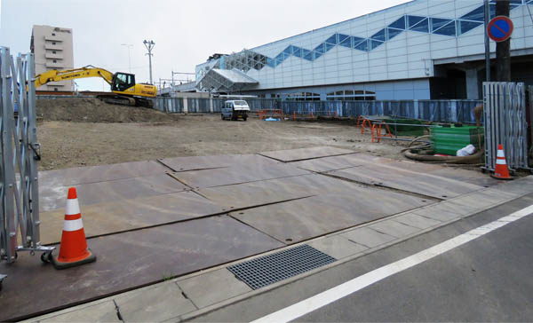 ![]() 支柱設置が進む北口の東側。右は駅舎。左はABホテル。 2016/12/17 ![]() 支柱設置が進む北口の西側 2016/12/17 |
