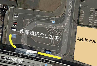 | 2010年5月末に駅前広場を完成した以降、大きな工事がなかった伊勢崎駅北口広場で、現在、連続屋根設置工事が進んでいます。場所は北口エントランスの両脇(下図黄色の箇所)。屋根の構造は南口広場で既に完成している形式と同様のようです。工期は来年2月28日。完成すれば、タクシーや送迎者の乗降で雨に濡れずに済みます。工事概要は下記の通り。(2016/12/21 記) | |