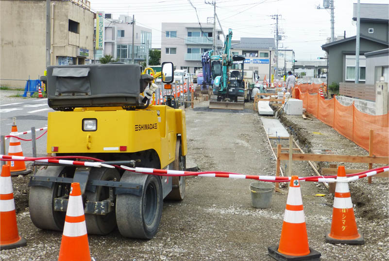 2018/9/16壱番街通り(旧駅前通り)では、9月16日時点で平成29年度追加分工事が進んでいます。工事箇所は道路東側の路床工や路盤工工事。車道部を深く掘削し、転圧等が進んでいました。(2018/9/28 記)発注:伊勢崎市中心市街地整備事務所 市街地整備課 工事会社:株式会社シマダさん 工事延長:132.8m 工期:2018年9月28日 |