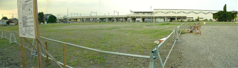 2014/9/18またまた前回レポートからたった9日しか経過していませんが、9月18日、たまたま伊勢崎駅に用事があり、空も爽やかだったので、「そうだ、ベイシア伊勢崎駅前店建設前のパノラマ風景を撮っておこう♪」と思い立ち、撮って参りました。![]() 敷地南西角地(工事完了時には駅南・東西通り位置)に立ち、北西〜北〜南東の180度写真で、5枚の写真を結合しました。同位置に立ち、建設途中、あるいは完成後の風景も撮ってみたいと思います。(2014/9/21 記) |