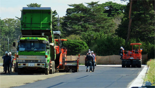 インターロッキング舗装完了アスファルト舗装はじまる 2024/10/1110月11日の伊勢崎市民プール跡地駐車場整備工事現場の状況です。現場では、北辺のスポーツロード沿いの歩道のアスファルト舗装を完了し、この歩道に面した二か所、および東辺の水生植物園沿いの一か所のフリースペースのインターロッキング舗装を完了。駐車場スペースではアスファルト舗装工事に着手していました。(2024/10/14 記) ![]() 北辺のスポーツロード沿いの歩道はアスファルト舗装完了。 二か所のフリースペースのインターロッキング舗装完了。 2024/10/11 ![]() インターロッキング舗装を完了した水生植物園沿いのフリースペース。 2024/10/11 ![]() アスファルト舗装を完了した北辺のスポーツロード沿いの歩道。 右後方に観覧車とジェットコースター。 2024/10/11 ![]() 北西角の歩行者出入り口部 2024/10/11 ![]() 駐車場西辺の植栽帯 2024/10/11 ![]() 駐車場の南側から北へ向かって、順次ベルト状にアスファルト舗装進行中 2024/10/11 ![]() アスファルト運搬車とアスファルトフィニッシャー、タイヤローラー 2024/10/11 |