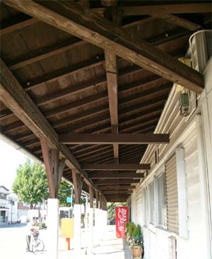 ![]() ホームも木造です 2009/9/26 ![]() 2009/9/26 ![]() 柱と梁の仕口(しぐち)部を補強する方杖(ほうづえ)が 花の蕾のようです。 2009/9/26 ![]() 木造の下屋。朽ちた部材が見つからず まだまだ現役で行けそうです。 2009/9/26 |
