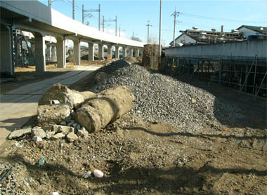 ![]() 伊勢崎駅付近 2013/12/8 ![]() 東武伊勢崎線・伊勢崎駅の仮設ホームも解体・整地完了。 の2013/12/13 ![]() 六間道路の旧踏切工事。12月14日に完了。 この場所は桁下制限高さ=3.5mのため、高架橋の南北に24時間365日、警備員が配置されています。 2013/12/13 |