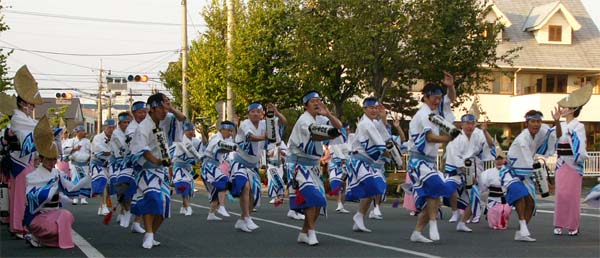 | ・・・そして、しんがりを務めるのは高崎から参加の「どですけ連」 「どですけ連」とは・・・・ど(Doctor)で(Dentist)すけ(助っと)連・・・「お医者さん+歯医者さん+看護士さんなどの助っ人さん」からのネーミングとのことです。どですけ連はバリエーション豊富な振り付けで踊ります。 ▲ページTopへ |