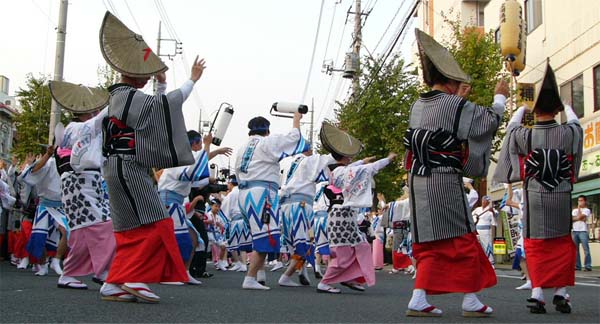 | 2009/10/18、例年のことですが、この日、市内の各地のイベントが重なり、燈華会の会場に到着したのは午後4時少し前。 ちょうど明治記念館前で阿波踊りが始まる直前でした。まずはご覧ください。 (2009/10/21 記) |