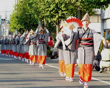 ![]() 道路の両脇を一列縦隊の阿波踊り 2007/10/20 |