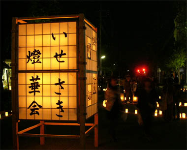 | 2012年10月20日(土)、21(日)の2日間、いせさき燈華会が開催されました。 いせさき明治館通りを中心に昼間は阿波踊りやチアリーディングが、夜は明治館通りや赤石楽舎広場にたくさんのろうそくが灯され、時報鐘楼やいせさき明治館がライトアップで浮き上がり、見慣れた街中風景が幻想的でファンタジックな世界へ変貌しました。 初日の夜には赤石楽舎において、群馬交響楽団メンバーによる弦楽四重奏コンサートが開催され、2日目の夜には伊勢崎神社境内で伊勢崎SMCビッグバンドのジャズコンサートが開催され、和の神社境内に洋のジャズサウンドが響き渡り、魅惑的で不思議な世界を広げてくれました。また同時開催イベントとして、アンティーク銘仙市やいせさき明治館の企画展示「銘仙でたどる着物100年史」なども行われました。 今年は、この2日間は伊勢崎市内の他のイベントや他の用事などとも重なり、見物に行けたのは2日目の夕刻以降。「どですけ連」の阿波踊りのエンディングにギリギリ間に合う時間でした。毎年、10月から11月中旬にかけての土日は、平日よりも忙しくなります。・・・とボヤキはこの辺にして、燈華会レポート第一弾は、阿波踊りと燈籠に照らされた街の風景です。(2012/10/24 記) |