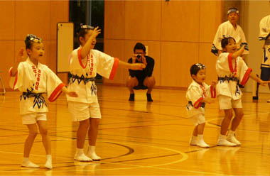 | 広い体育館が狭く感じるほどの、ダイナミックで迫力ある「どですけ連」の阿波踊りでした。男衆のシャープでエネルギッシュな舞、女衆のエレガントで華麗な舞、子どもたちの可愛らしい舞。そして踊りを支え、引き立てる和楽器部隊の演奏。 開始から終了まで、きっと何かのストーリーがあるに違いないと思わせる一連の踊り。その間約25分でしたが、何か能や歌舞伎舞台を見たような感動を得ました。 あまりに洗練されてバッチリと決まった踊りなので、演舞の後、メンバーの女性にお聞きすると、練習は厳しく、毎週全員集まって練習を重ねているとのことです。 ご存知の方も多いと思いますが、「どですけ連」の名前の由来は、「ど:Doctor(医者)」、「で:Dentist(歯科医)」、「すけ:助っ人(看護師さんや病院で働く人たち)」とのことです。高崎から駆け付けてくれました。 今年も素晴らしい阿波踊りをご披露いただき、ありがとうございました。(2013/10/24 記) |