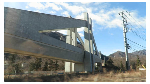 | 【概要】 工事名: JR第二吾妻川橋梁JV工事/場所:群馬県吾妻郡東吾妻町松谷地区 発注者:東日本旅客鉄道/設計:八千代エンジニヤリング/施工:JR第二吾妻川橋梁JV 橋梁形式:単純PRC中路箱桁橋+3径間連続PRC(*)斜版中路箱桁橋 橋長:431.0m(41.0m+111.5m+167.0m+111.5m)/最大支間:167.0m/最高主塔高:41.8m 工期:2005年7月〜2010年3月 (*)PRC(プレストレスト鉄筋コンクリート。Prestressed Reinforced Concrete) |